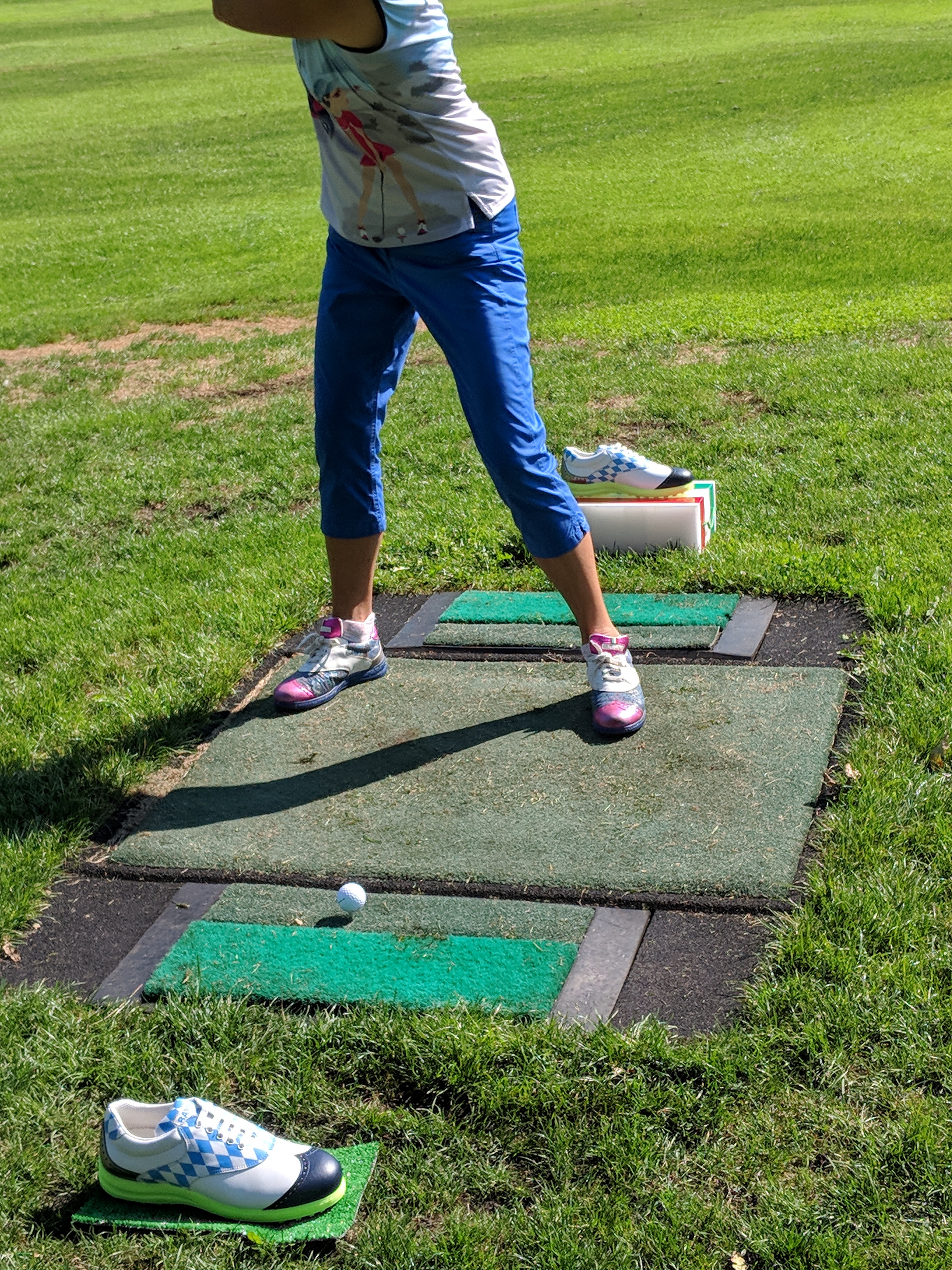 Die Matten-Abschläge des Kurzplatzes waren mit Bayern-Schuhen dekoriert.